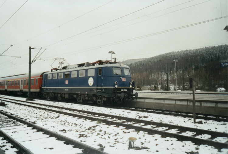 Zum Fahrplanwechsel am 15. Dezember 2002 wird die Zahl der Heimatdienststellen der Baureihe 110 erneut erweitert: Das Werk Freiburg wird 21 mit CIR-ELKE ausgerüsteten Maschinen aus Saarbrücken übernehmen. Die Loks sind derzeit vor allem auf der Relation Basel - Offenburg - Karlsruhe -Mannheim - Saarbrücken zu finden. Neben 20 „Bügelfalten"-110 gehört auch die 1957 gebaute „Kasten"-110 169 dazu, vor Jahren die Prototyp-110 mit LZB. Die im Mai 1998 hauptuntersuchte, verkehrsrote Lok hatte bereits im August 2002 ihren Laufkilometergrenzwert erreicht und wurde daher zur erneuten HU in dasWerk Dessau geschickt. Sie ist bereits die vierte Maschine, die nach dem offiziellen Ende der Untersuchngen an „Kasten"-110 eine Hauptuntersuchung erhielt. Die vor allem im Abschnitt Offenburg - Freiburg -Basel im Jahr 2001 weitgehend von den acht Freiburger 111 mit Doppelstockzügen verdrängten 110 werdenn in Freiburg zukünftig auch einen Teil der 143 ablösen'n, die dann nach Trier abgegeben werden. An „Bügelfalten"-110